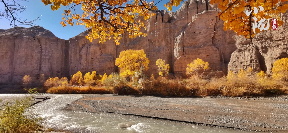初冬時(shí)節(jié),這里的胡楊林五彩斑斕,金碧輝煌,黃燦燦的樹葉與藍(lán)天、白云相映成趣。在陽(yáng)光的照耀下,金黃色的樹葉隨風(fēng)搖曳,肆意而優(yōu)雅,為秋天帶來幾分浪漫。身入林中,涼爽的空氣中洋溢著淡淡清香,像溫暖的秋陽(yáng),沁人心脾。