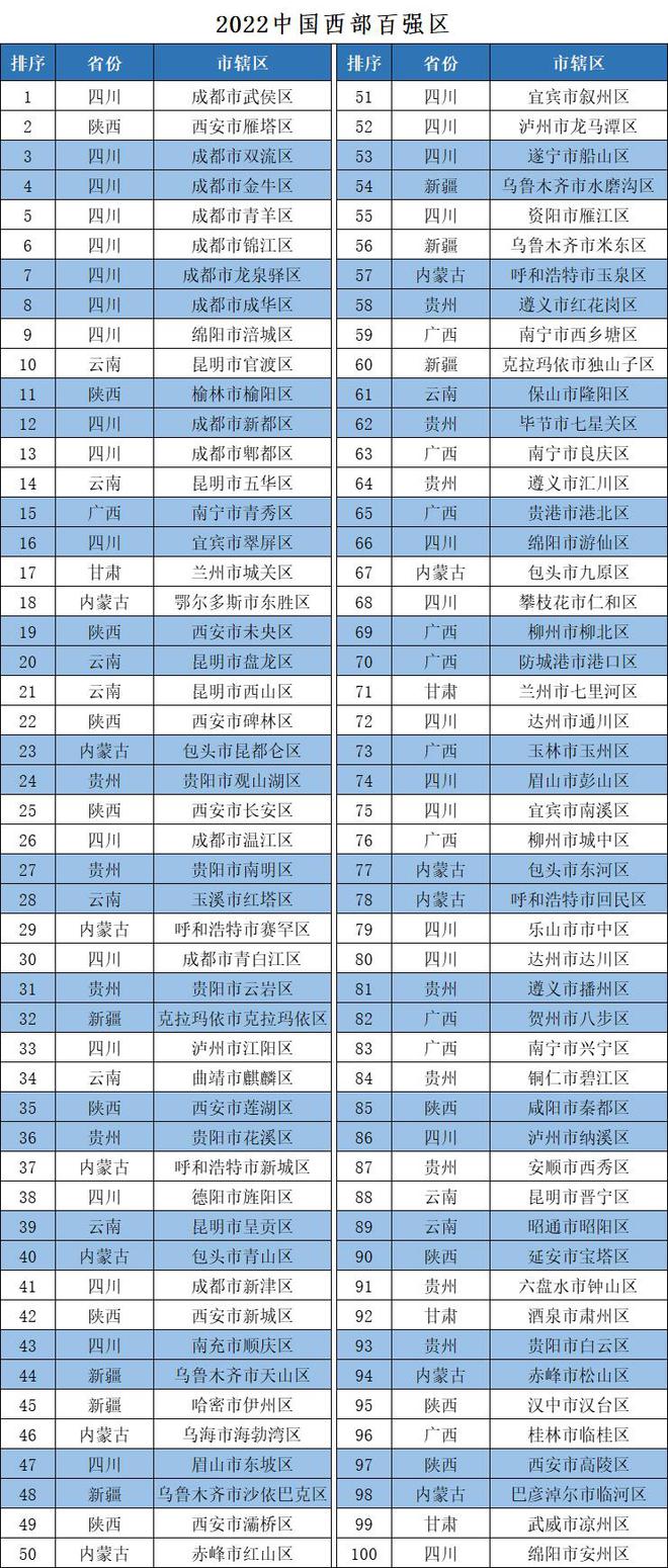 《中國(guó)西部地區(qū)縣域發(fā)展監(jiān)測(cè)報(bào)告》由競(jìng)爭(zhēng)力智庫(kù)、北京中新城市規(guī)劃設(shè)計(jì)研究院等機(jī)構(gòu)聯(lián)合編制,監(jiān)測(cè)評(píng)價(jià)對(duì)象為西部12個(gè)?。ㄗ灾螀^(qū)、直轄市)的全部縣域單位,從經(jīng)濟(jì)規(guī)模、人民生活、經(jīng)濟(jì)活力、發(fā)展質(zhì)量等四個(gè)方面進(jìn)行評(píng)價(jià),四個(gè)分項(xiàng)指數(shù)合成競(jìng)爭(zhēng)力指數(shù)。其中,縣(縣級(jí)市、自治縣、旗、自治旗、特區(qū))競(jìng)爭(zhēng)力指數(shù)前100名為“中國(guó)西部地區(qū)綜合競(jìng)爭(zhēng)力百?gòu)?qiáng)縣市”,簡(jiǎn)稱“中國(guó)西部百?gòu)?qiáng)縣市”或“西部百?gòu)?qiáng)縣”;市轄區(qū)競(jìng)爭(zhēng)力指數(shù)前100名為“中國(guó)西部地區(qū)綜合競(jìng)爭(zhēng)力百?gòu)?qiáng)區(qū)”,簡(jiǎn)稱“中國(guó)西部百?gòu)?qiáng)區(qū)”或“西部百?gòu)?qiáng)區(qū)”。今年,課題組在開展西部地區(qū)縣域發(fā)展監(jiān)測(cè)評(píng)價(jià)的基礎(chǔ)上,還聯(lián)合有關(guān)單位和專家,分區(qū)域、分類型總結(jié)了“2022中國(guó)西部地區(qū)縣域高質(zhì)量發(fā)展典型案例”,準(zhǔn)格爾旗、平果市、仁壽縣、彭州市、瀘縣、吳起縣、玉門市、開陽(yáng)縣、大竹縣、彬州市、成都市雙流區(qū)、西安市雁塔區(qū)、昆明市官渡區(qū)、包頭市昆都侖區(qū)、克拉瑪依市克拉瑪依區(qū)、貴陽(yáng)市觀山湖區(qū)、南寧市青秀區(qū)、蘭州市城關(guān)區(qū)、西寧市城西區(qū)、銀川市興慶區(qū)等20個(gè)縣(市、區(qū))入選典型案例名單,供全國(guó)交流學(xué)習(xí)。