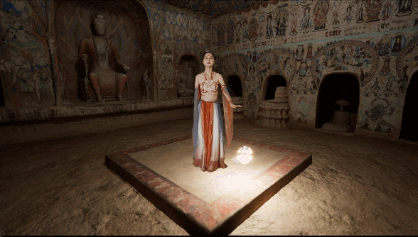 體驗(yàn)過(guò)后,游客還能在虛擬演播廳,實(shí)時(shí)拍攝一段真人與洞窟虛擬場(chǎng)景交互的視頻。無(wú)論身處何處,打開(kāi)手機(jī)便能重溫這段“帶得走”的敦煌記憶。