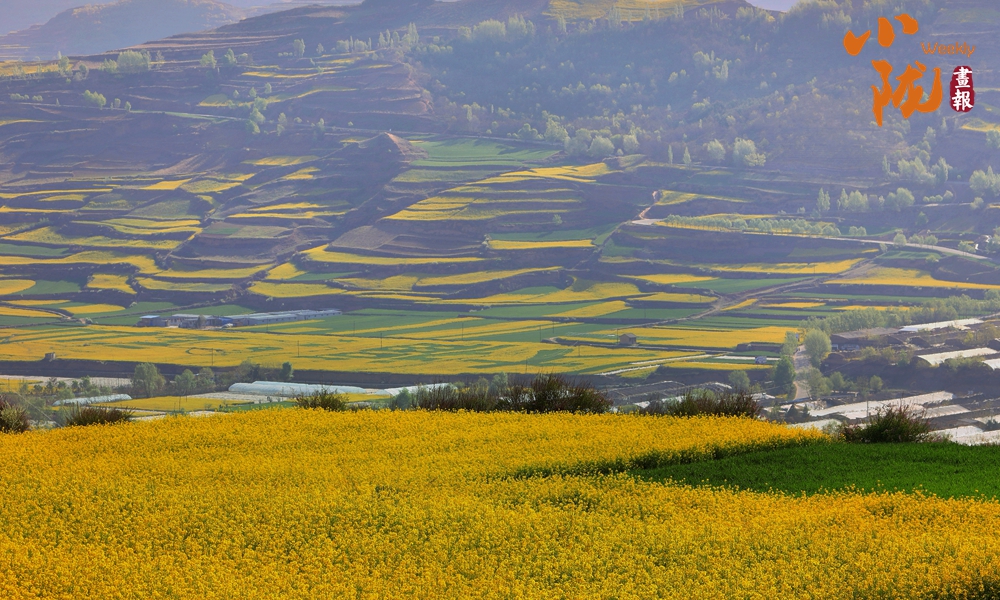 在武山縣龍臺鎮(zhèn)、灘歌鎮(zhèn)、楊河鎮(zhèn)等高山地區(qū),萬畝優(yōu)質高山油菜已花開成海,梯田式的油菜花與遠山近水、村落農家交相輝映,與綠油油的麥田相映成趣,形成了獨具風格的山水田園風光,為大地呈現(xiàn)出最美的春色。