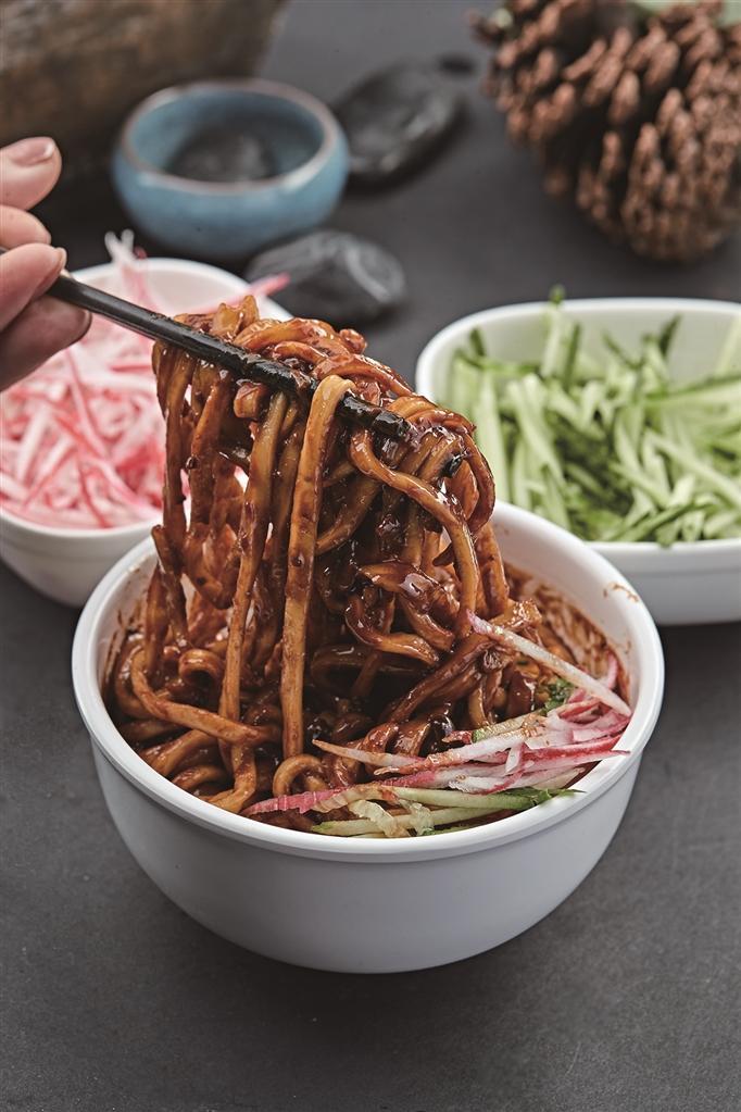 和老北京炸醬面相比,蘭州炸醬面雖然少了時(shí)令蔬菜,但是肉醬分量很足,這絕對代表了蘭州人的實(shí)在和“碳水之都”的誠意。一口裹上醬汁的面條可以直接“擊碎”饑餓。蘭州人做炸醬用現(xiàn)成的面醬加上肉末、蔥等作為主料,再配以農(nóng)家常見的蔬菜丁,把肉末上鍋烹炒后放入蔥末,再添加調(diào)料炒到半熟加入適當(dāng)?shù)乃每旎馃?,炸醬中加淀粉勾芡使炸醬變得柔滑濃香,再配上筋道的手工拉面澆上炸醬,加上辣椒油,淋一點(diǎn)醋那就濃香四溢了。