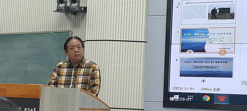 馮玉雷一直認(rèn)認(rèn)真真,埋頭干事。他心中有一個非常宏大的目標(biāo),向著這個目標(biāo)行進(jìn)過程中,腳踏實地。前幾年他在西北師范大學(xué)首開公選課《中國玉文化》,把玉文化作為專門的一門課來講,具有開拓性。玉文化作為一門學(xué)科,在全國各大高校此前還沒有先例,馮玉雷先生做了一件非常有意義的事情。這次講座對我非常有啟發(fā)。從這門課的內(nèi)涵來講,其實又是一個延續(xù):對傳統(tǒng)文化也好,考古文化也好,對甘肅省乃至整個中華大地,從玉文化開始出現(xiàn),發(fā)展到現(xiàn)在,就是一種延續(xù)。玉和玉器至堅至柔,至圣至潔,卻默默無言,但是它們告訴了我們很多以前不知道或者沒有意識到的信息,從重見天光的那一刻起,有無數(shù)信息在源源不斷的釋放,就看人們?nèi)绾卫斫猓绾谓庾x。如果不研究、發(fā)現(xiàn)這些玉器的內(nèi)涵,那還是相當(dāng)于某種意義上的沉睡。馮玉雷創(chuàng)作小說,研究玉文化,還組織十幾次考察活動,國內(nèi)的有些大家都參與,這像不像流動的學(xué)術(shù)討論會?他的長篇小說《禹王書》出版剛剛一個月,據(jù)我所知,“玉文化、神話小說《禹王書》的學(xué)術(shù)背景”講座是首次分享,他把研究成果、創(chuàng)作成果第一時間通過課堂與同學(xué)們分享,我仿佛看到他帶著學(xué)生勇往直前,義無反顧地向前走著,這本身就是玉文化精神的傳承和發(fā)揚(yáng)!我感覺到馮玉雷《禹王書》的思緒上下翻飛,縱橫馳騁,騰躍五千年。小說中有非常核心的價值內(nèi)涵,就是玉文化本身所具有的、深深進(jìn)入到我們民族根脈中的文化內(nèi)涵,同時,又有就是對文學(xué)的一種激發(fā)。小說中的神話人物以及他們之間的交流、故事、語言,還有那些玉器,都非常神奇??梢灶A(yù)想,這本書的后延性非常長遠(yuǎn),希望玉文化班的同學(xué)能夠在馮玉雷老師帶領(lǐng)下,傳承發(fā)揚(yáng)玉文化,完成從璞玉到玉器的轉(zhuǎn)化!