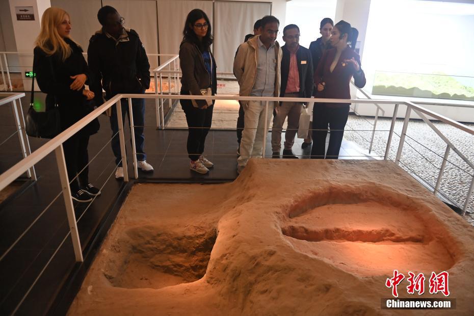 ?。保霸拢玻踩眨玻埃玻辞嗄隄h學家研修計劃甘肅班團隊22個國家的青年漢學家,走進甘肅省天水市秦安縣大地灣遺址參觀并進行專題研修。大地灣遺址是新石器時代大型聚落遺址,出土了中國乃至世界上最早的彩陶文化、最早的文字符號、種植生產了中國第一批糧食品種黍、出現了最早的宮殿式建筑、發(fā)明了世界最早的水泥地面、創(chuàng)造了最早的繪畫作品——F411地畫。圖為22國青年漢學家參觀大地灣博物館。中新社記者 李亞龍 攝