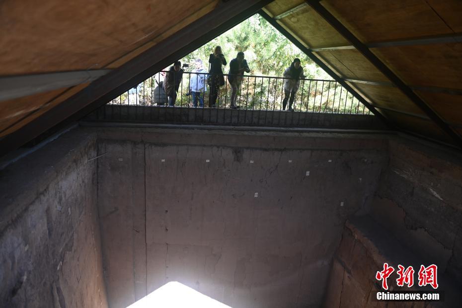 ?。保霸拢玻踩眨玻埃玻辞嗄隄h學家研修計劃甘肅班團隊22個國家的青年漢學家,走進甘肅省天水市秦安縣大地灣遺址參觀并進行專題研修。大地灣遺址是新石器時代大型聚落遺址,出土了中國乃至世界上最早的彩陶文化、最早的文字符號、種植生產了中國第一批糧食品種黍、出現了最早的宮殿式建筑、發(fā)明了世界最早的水泥地面、創(chuàng)造了最早的繪畫作品——F411地畫。圖為大地灣博物館墓葬701。中新社記者 李亞龍 攝