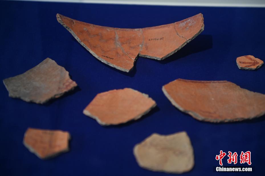 ?。保霸拢玻踩?,2024青年漢學家研修計劃甘肅班團隊22個國家的青年漢學家,走進甘肅省天水市秦安縣大地灣遺址參觀并進行專題研修。大地灣遺址是新石器時代大型聚落遺址,出土了中國乃至世界上最早的彩陶文化、最早的文字符號、種植生產了中國第一批糧食品種黍、出現了最早的宮殿式建筑、發(fā)明了世界最早的水泥地面、創(chuàng)造了最早的繪畫作品——F411地畫。圖為大地灣博物館展品最早的文字符號彩繪符號陶片。中新社記者 李亞龍 攝