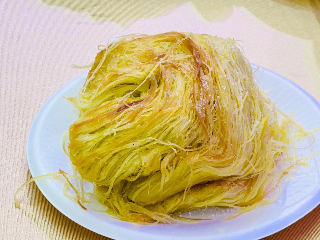一窩絲的制作是一門精細(xì)的藝術(shù)。面粉、水、鹽和油巧妙混合,揉成光滑面團(tuán)后,反復(fù)地拉伸、對折,直至那面團(tuán)細(xì)如發(fā)絲,再盤成一團(tuán)放入烤箱中,逐漸變得金黃酥脆。吃起來,那口感是層層疊疊的酥,帶著淡淡的油香,每一根絲在齒間斷裂,釋放出獨特的風(fēng)味。