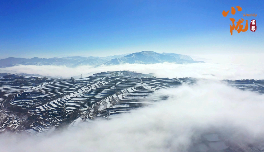 溝壑縱橫的山谷和層層梯田云霧繚繞,俯視而下,山川與云海交織如水墨畫(huà)。