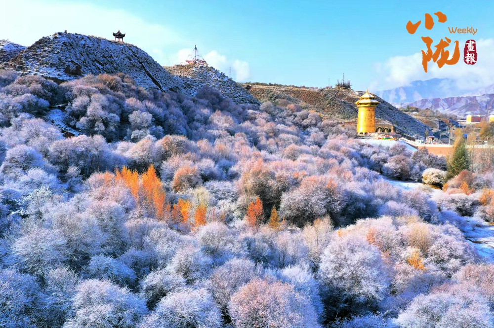 祁連山下,被譽(yù)為“空中草原”的康樂草原段披上了銀裝,皓然一色,如詩(shī)如畫。