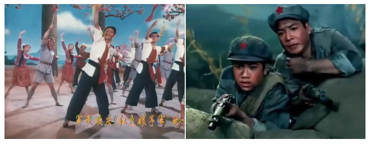 大眾傳播時(shí)代,中央電視臺(tái)的轉(zhuǎn)播率先將《紅軍不怕遠(yuǎn)征難》從劇場(chǎng)送入千家萬(wàn)戶。1985年,舞蹈被攝制成電影并全國(guó)公映,從機(jī)關(guān)單位到中小學(xué)校,組織化的集體觀看使其從即時(shí)性的舞臺(tái)呈現(xiàn),延伸為可供反復(fù)欣賞的歷史影像。與此同時(shí),舞蹈中那些震撼人心的畫(huà)面與造型,被凝固定格為經(jīng)典圖像,廣泛進(jìn)入教材、讀物等宣傳載體,從流動(dòng)的舞臺(tái)藝術(shù)轉(zhuǎn)化為深入人心的視覺(jué)符號(hào)。作品中那些簡(jiǎn)潔而富有象征意義的舞蹈語(yǔ)言,也成為全國(guó)各地文藝團(tuán)體與學(xué)校學(xué)習(xí)、演繹的藍(lán)本,在基層舞臺(tái)上被不斷復(fù)現(xiàn)與傳承。