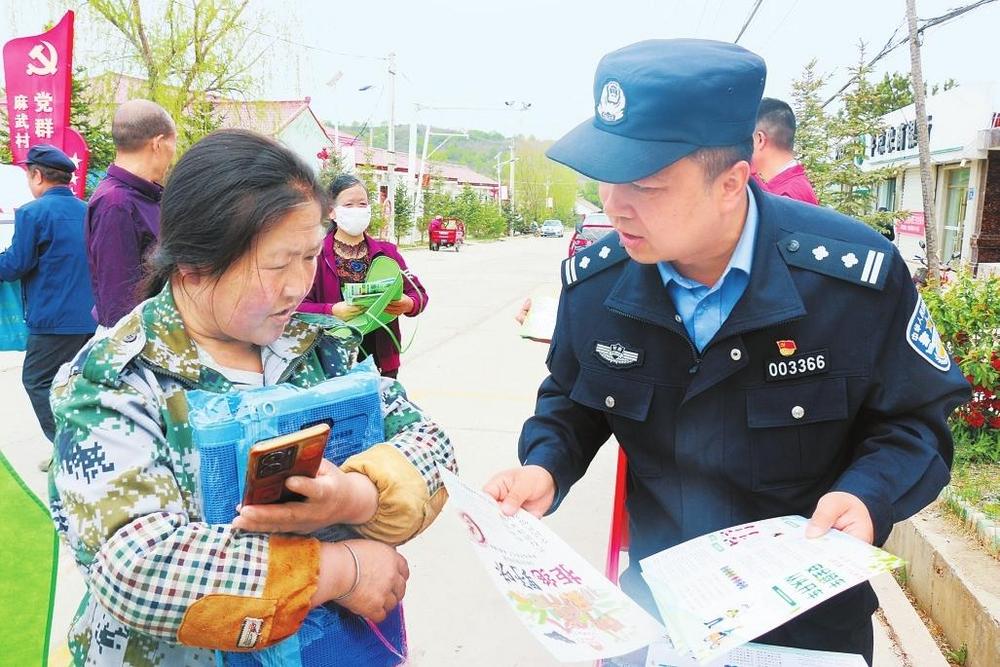 民警向群眾發(fā)放宣傳資料。5月12日,省公安廳森林公安局太統(tǒng)崆峒山分局組織開(kāi)展防災(zāi)減災(zāi)日宣傳活動(dòng)。 新甘肅·甘肅法治報(bào)通訊員薛瑞攝
