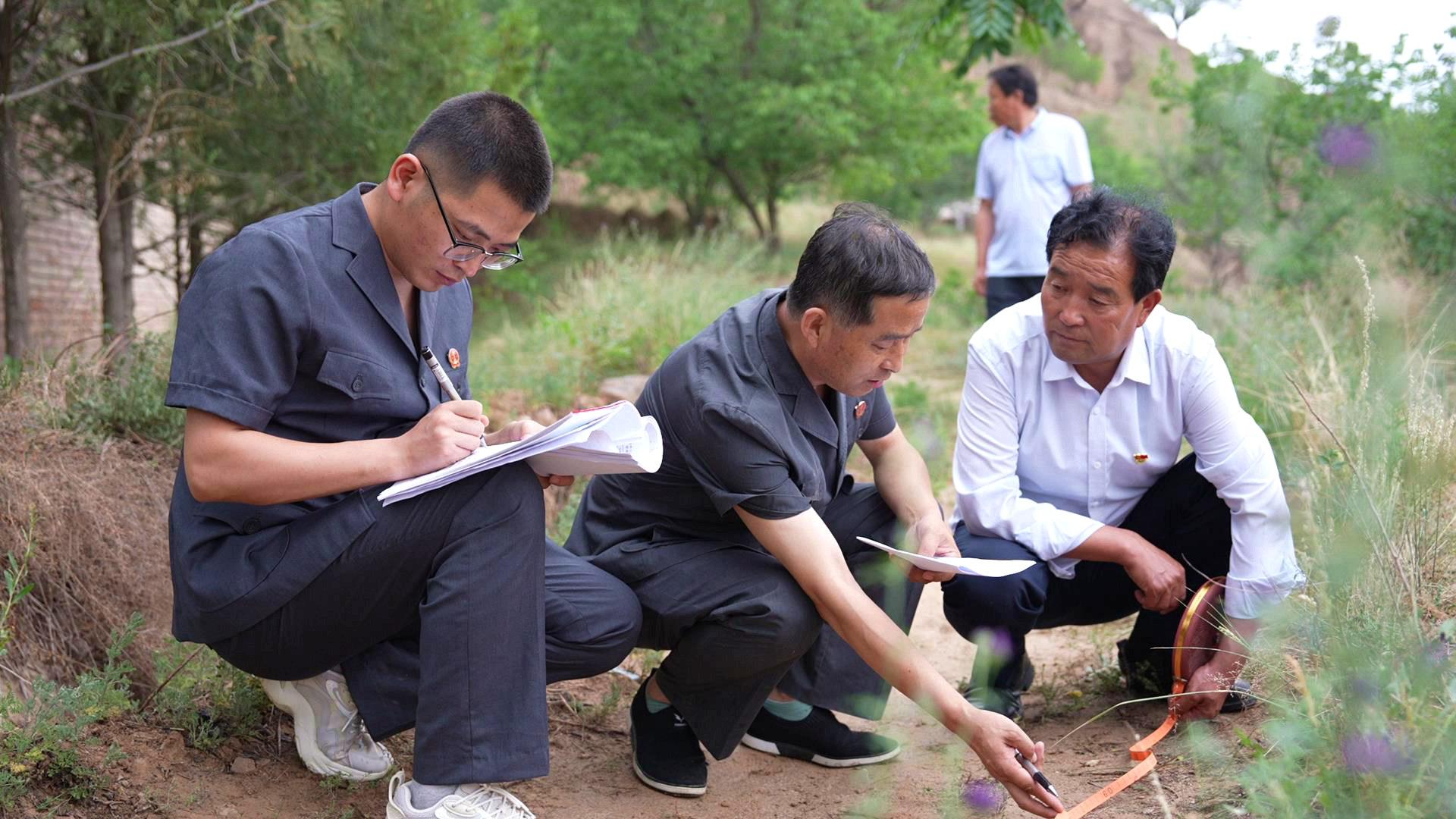 鎮(zhèn)原縣法院開邊法庭現(xiàn)場(chǎng)調(diào)處一起相鄰權(quán)糾紛(慶陽市中級(jí)人民法院供圖)