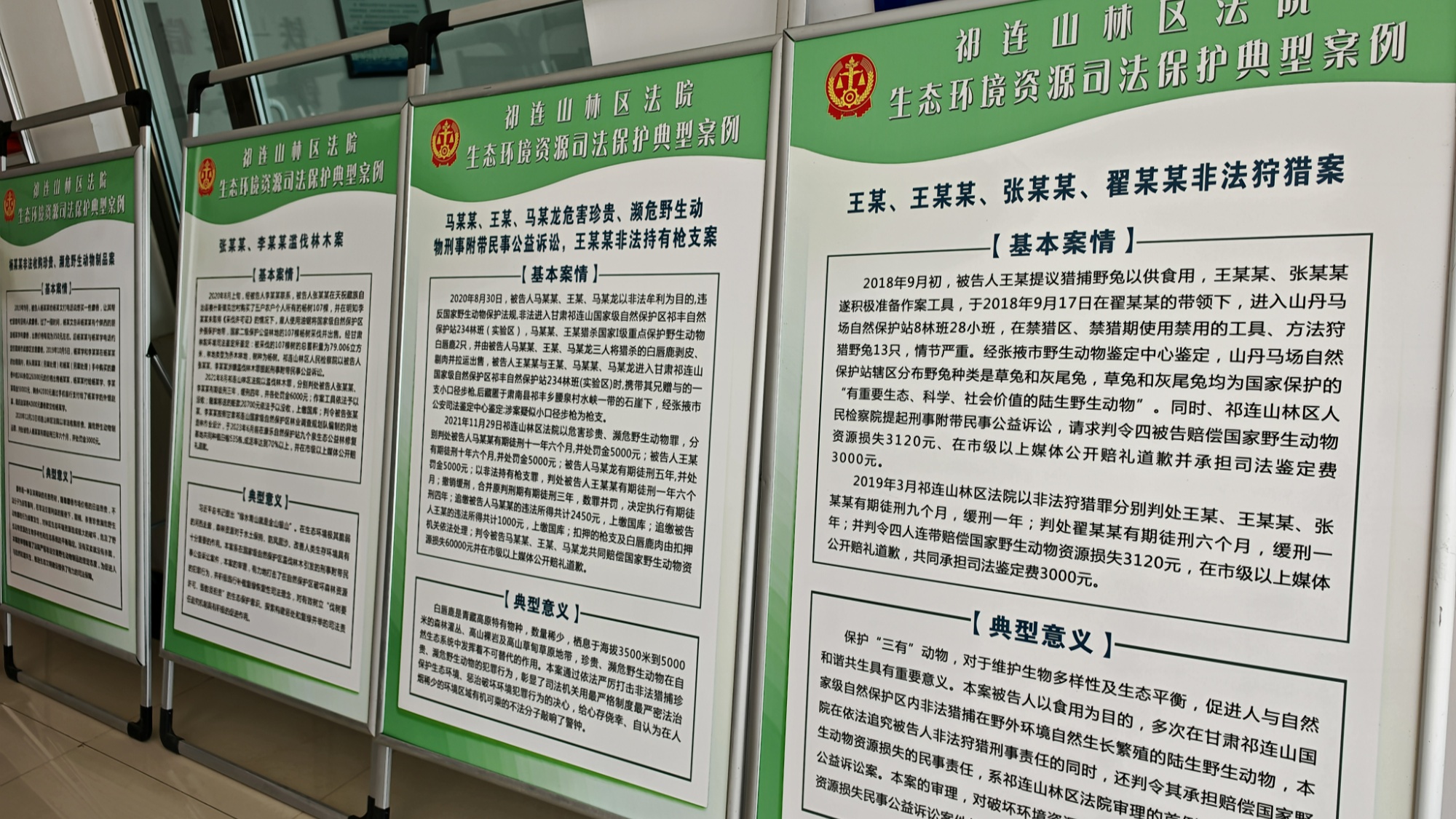 巡回審判庭的“法庭”從不在屋里。有時(shí)在油菜花田邊支起桌案,法槌一落,“王某前森林草原失火案”的庭審就成了最鮮活的普法課——這案子入選最高人民法院青藏高原生態(tài)保護(hù)典型案例,法官蹲在牧人身邊,指著草原防火設(shè)備說(shuō)“咋用”,掰著指頭算“失火要擔(dān)啥責(zé)”,牧民們握著趕牧鞭聽(tīng)得入神,連羊群都靜悄悄地伏在遠(yuǎn)處。辦案點(diǎn)的展板上,非法采礦、危害珍貴野生動(dòng)物等10個(gè)典型案例圖文并置,像10面透亮的鏡子,照得生態(tài)保護(hù)的法律紅線(xiàn)清清楚楚。
