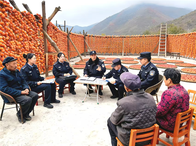 ▲舟曲縣公安局城關(guān)派出所民輔警深入轄區(qū)柿子晾曬場(chǎng)和柿子收購(gòu)點(diǎn),開展反詐宣傳活動(dòng)。(朱彤 攝)
