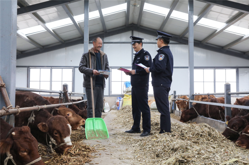 ▲平?jīng)鍪泄簿轴轻挤志终优沙鏊褫o警深入轄區(qū)紅牛養(yǎng)殖基地,開展針對(duì)性普法宣傳活動(dòng),進(jìn)一步筑牢轄區(qū)紅牛養(yǎng)殖產(chǎn)業(yè)法治防線,提升廣大養(yǎng)殖戶的法律意識(shí)。(張鏡鏡 攝)