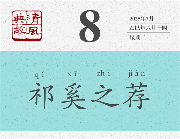 左丘明認為,祁奚才是真正能舉薦賢能的人:“稱其仇,不為諂;立其子,不為比;舉其偏,不為黨。”意思是,祁奚推舉他的仇人,不是為了諂媚;推薦自己的兒子,不是出于偏愛;推薦自己的下屬,不是為了結(jié)黨營私?!秴问洗呵铩贩Q:“外舉不避仇,內(nèi)舉不避子,祁黃羊可謂公矣。”后世即以“祁奚之薦”為典,形容舉薦人才心胸開闊,公正無私。唐人姚元崇《答張九齡書》:“歷官三朝,年逾一紀,凡所稱薦,罕避嫌疑,實有祁奚之舉。”