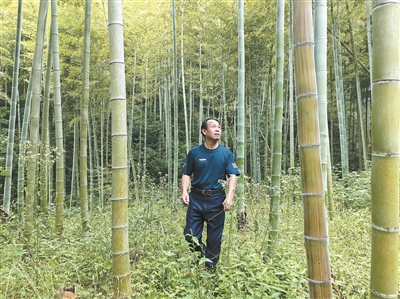 2011年,余村啟動竹林修復(fù)工程,土生土長的余村人汪苗青成為首批護林員。他告訴記者,“在竹林開發(fā)中我們有個規(guī)矩:只能砍6年以上的竹子、不能砍新竹,村民們也都自覺地不再私砍濫伐,這都是對生態(tài)環(huán)境的守護。”