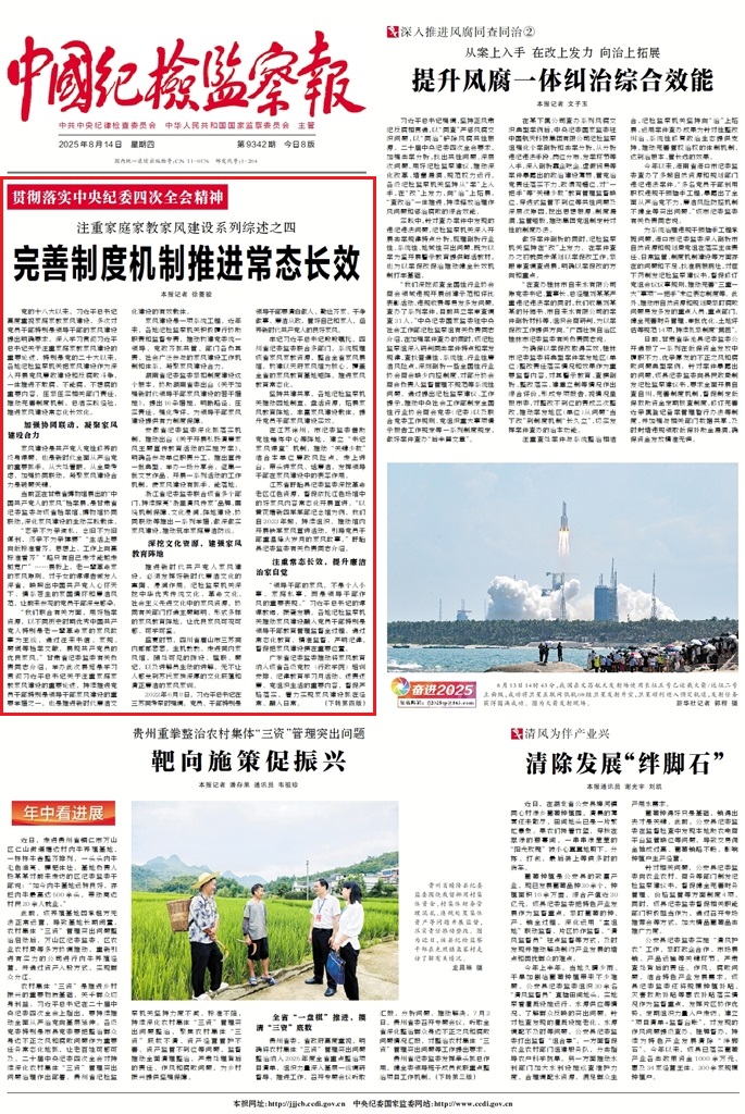 《中國(guó)紀(jì)檢監(jiān)察報(bào)》2025年8月14日 第1版