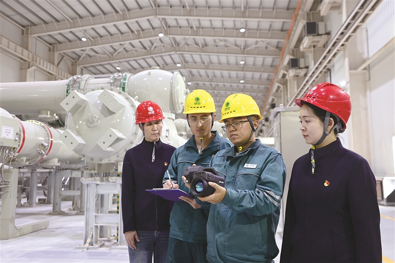 國網寧夏電力有限公司紀委以有力監(jiān)督推動“寧電入湘”特高壓線路工程投運后各項工作平穩(wěn)有序推進。圖為近日,該公司紀委工作人員在國網寧夏超高壓公司中寧換流站開展現(xiàn)場監(jiān)督檢查。王天鵬 攝