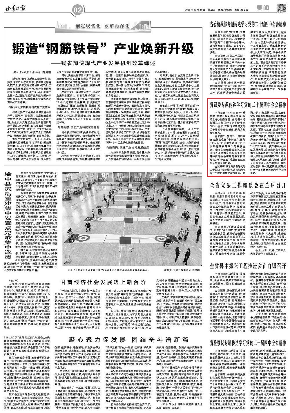 《甘肅日?qǐng)?bào)》2025年10月30日 第2版