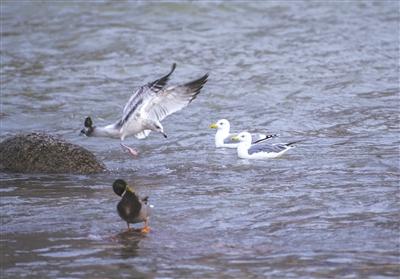 海鷗爭魚。張福昌2019年12月中旬攝于蘭州城關(guān)黃河大橋。