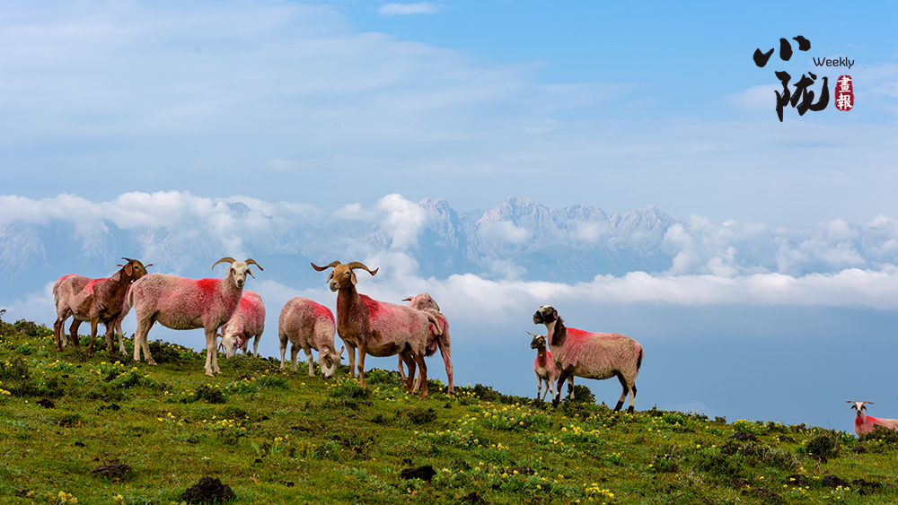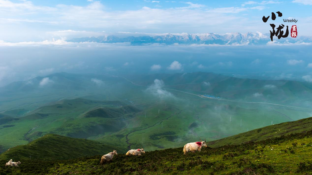 山頂被譽(yù)為草原白珍珠的天祝白牦牛和羊群云中漫步,云下蔥蘢牧場(chǎng)若隱若現(xiàn),一幅水墨山水畫(huà)卷徐徐呈現(xiàn)在眼前。
