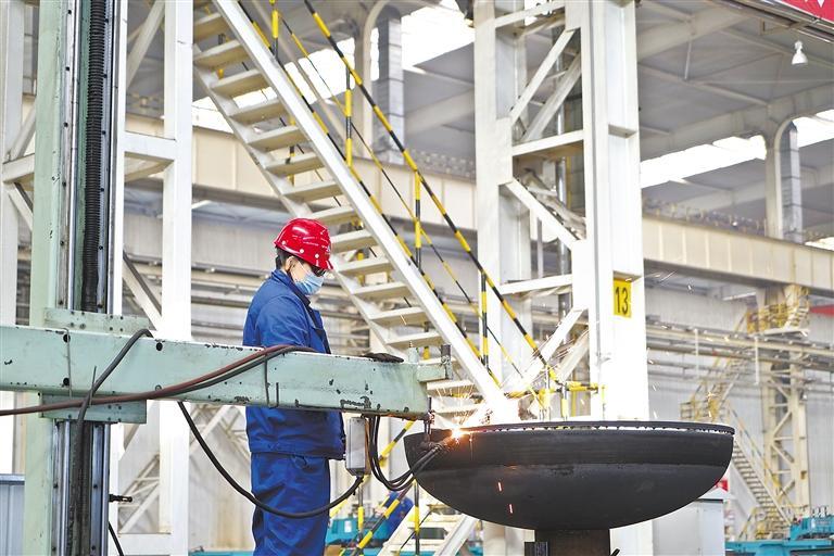 蘭石重裝煉化公司裝焊一車間生產繁忙。新甘肅·甘肅日報記者 王占東