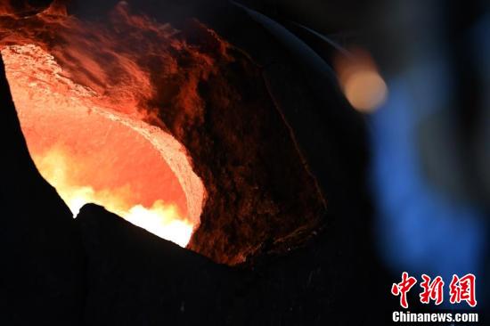 金川集團鎳冶煉廠閃速爐車間內(nèi),工作人員穿戴專業(yè)防護裝備觀察轉(zhuǎn)爐天然氣烤爐。