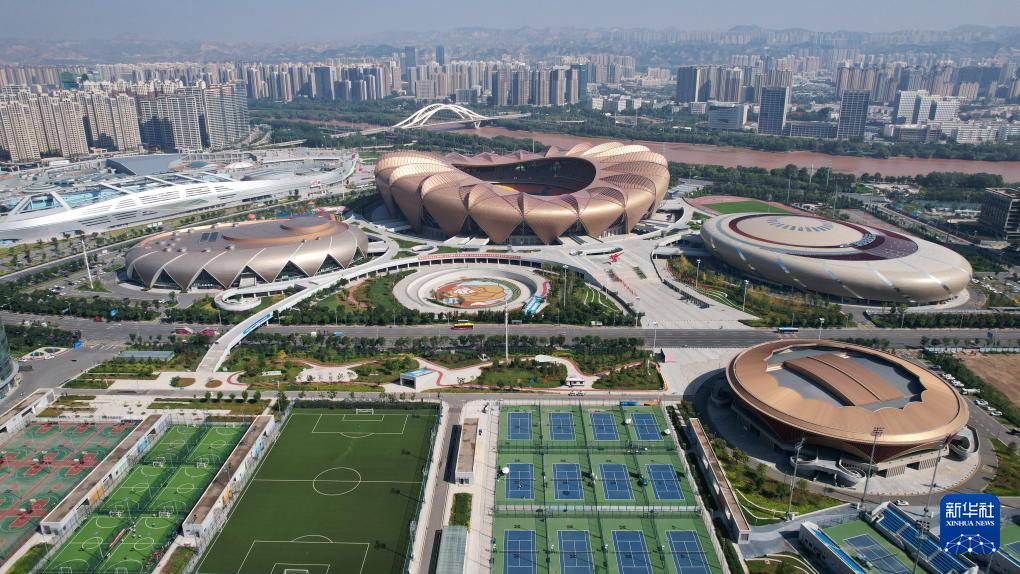 這是位于黃河蘭州段岸邊的蘭州奧體中心(9月26日攝,無(wú)人機(jī)照片)。新華社記者陳斌攝