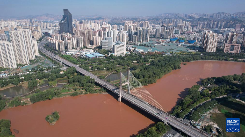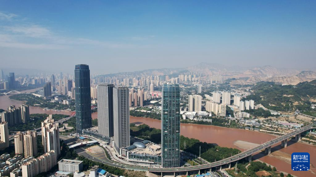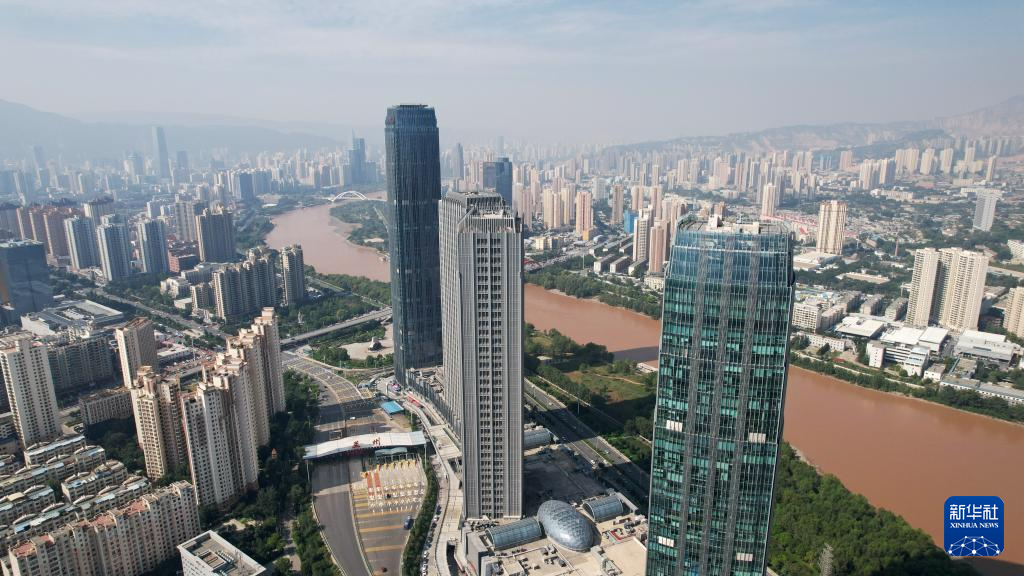 這是蘭州市城關(guān)區(qū)黃河岸邊林立的高樓(9月24日攝,無(wú)人機(jī)照片)。新華社記者陳斌攝