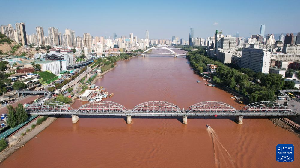 這是黃河蘭州段的百年鐵橋——中山橋(9月23日攝,無(wú)人機(jī)照片)。新華社記者陳斌攝