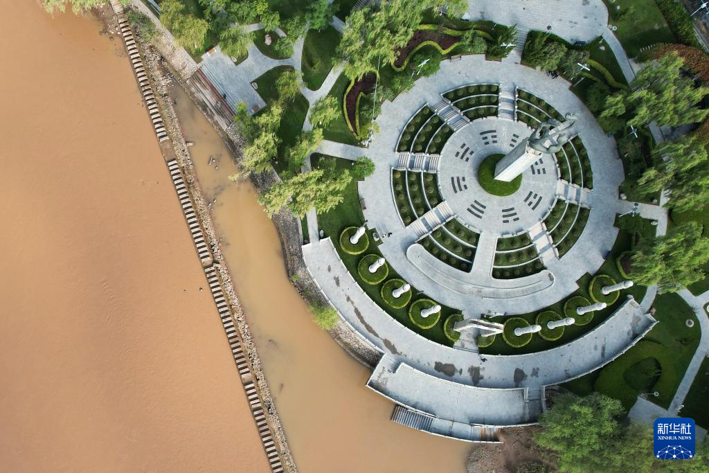 這是位于黃河蘭州段北岸的龍?jiān)垂珗@(9月25日攝,無(wú)人機(jī)照片)。新華社記者陳斌攝