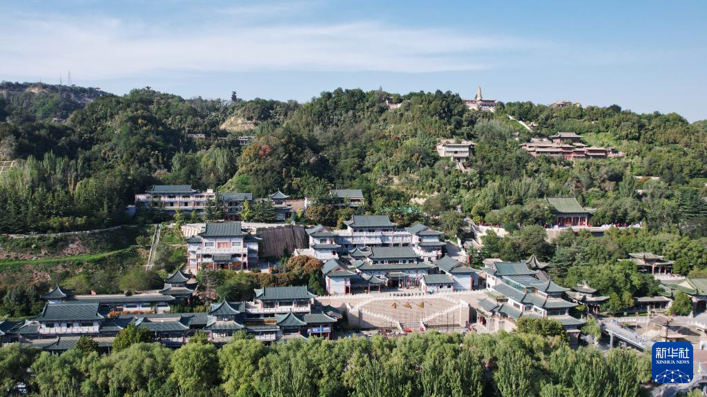 這是坐落于黃河蘭州段北岸白塔山西麓的蘭州碑林(9月23日攝,無(wú)人機(jī)照片)。新華社記者陳斌攝