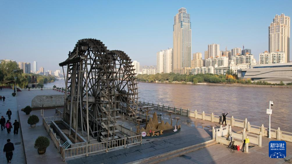 這是位于蘭州市城關(guān)區(qū)的蘭州水車(chē)博覽園內(nèi)的水車(chē)(9月24日攝,無(wú)人機(jī)照片)。新華社記者陳斌攝