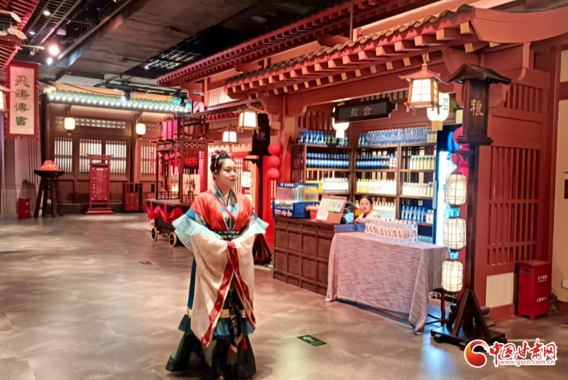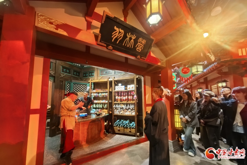 “這里的古街古巷、酒肆茶館、青石板路等場(chǎng)景極為逼真,店鋪內(nèi)的物件也都嚴(yán)格按照漢代規(guī)制打造,每一處細(xì)節(jié)都經(jīng)得起推敲,給游客帶來(lái)強(qiáng)烈的視覺沖擊和沉浸式體驗(yàn)。”王建剛介紹,街區(qū)內(nèi)的NPC角色穿梭其中,游客可與霍去病“并肩作戰(zhàn)”,或在隴春山的詩(shī)會(huì)中與古人“對(duì)飲”。