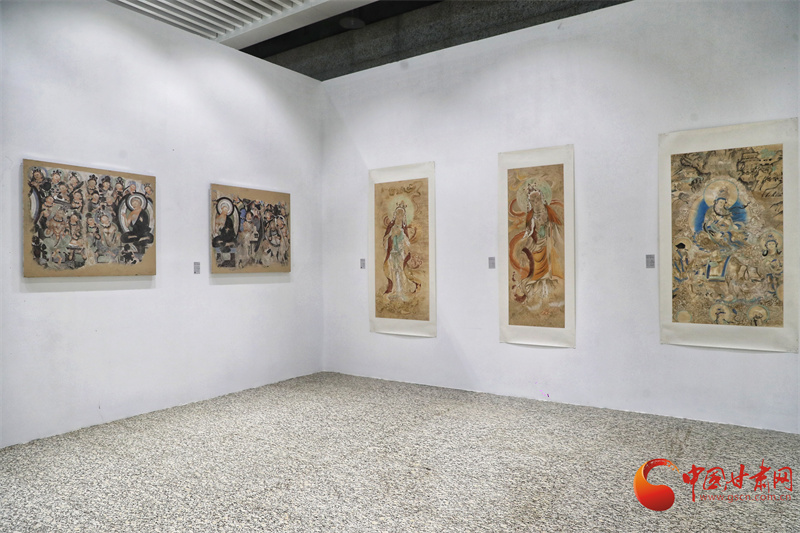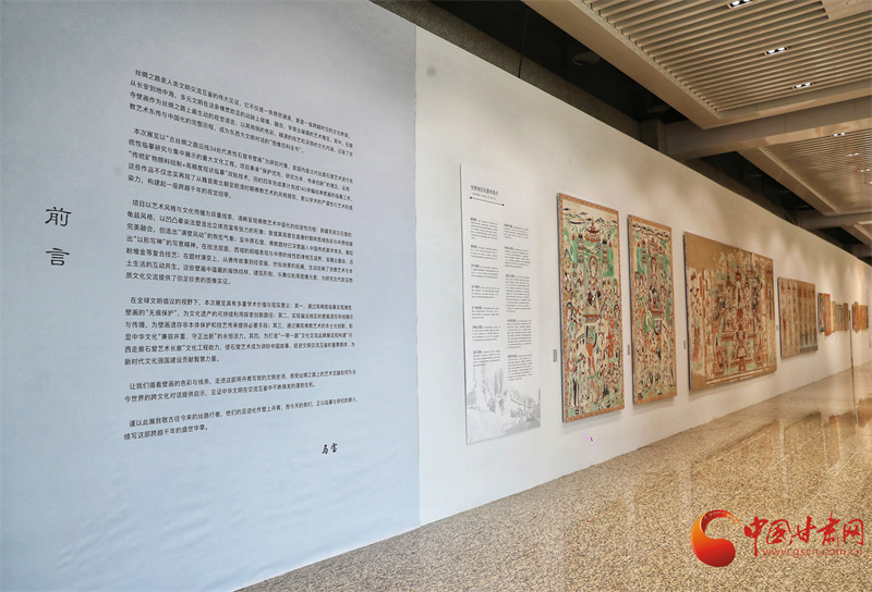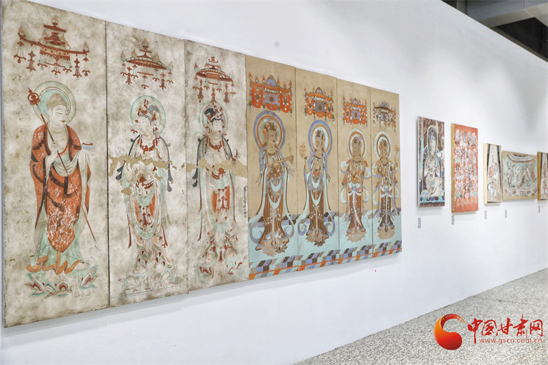 第八屆敦煌文博會“絲路華彩·盛世華章——敦煌及絲路沿線地區(qū)石窟寺壁畫藝術傳播與展示”專展,西北師范大學敦煌學院馬寶團隊帶來了絲路沿線34個石窟寺壁畫臨摹作品,以及流失海外的壁畫精品臨摹作品,系統(tǒng)梳理了以河西走廊石窟群為代表的絲綢之路沿線石窟壁畫藝術,讓全世界的觀眾可以更直接參觀熠熠生輝的絲綢之路經(jīng)典壁畫。