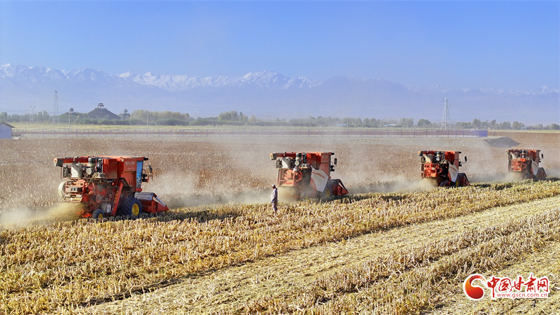 時(shí)下,在甘肅省張掖市民樂(lè)工業(yè)園區(qū)濱河集團(tuán)萬(wàn)畝原糧種植基地,農(nóng)機(jī)手駕駛收割機(jī)穿梭田間地頭收割高粱,一派繁忙豐收景象。