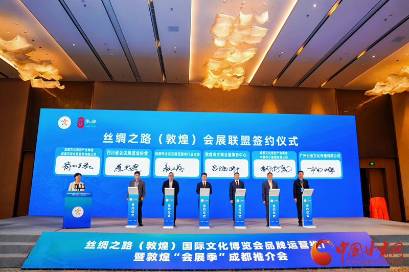簽約儀式后,還舉行了絲綢之路(敦煌)會展聯(lián)盟(成都)推廣中心揭牌儀式,標志著敦煌會展在成都及周邊地區(qū)推廣正式開啟,兩地會展合作進入常態(tài)化、機制化新階段。
