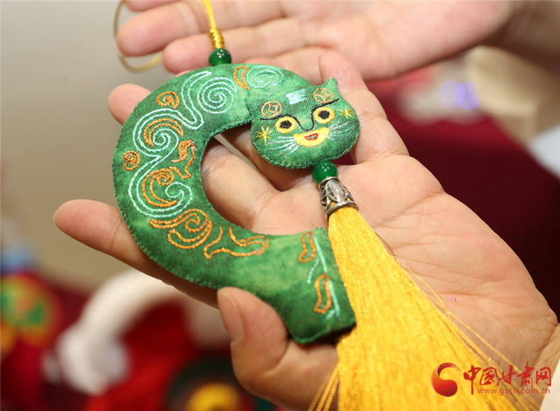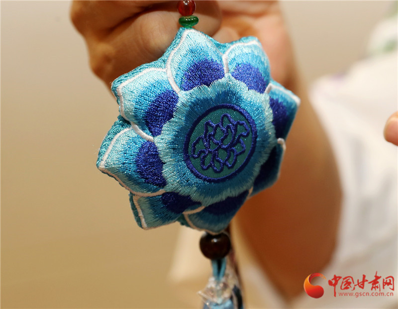 甘肅省博物館非遺集市的展臺(tái)前,包雨蕾的敦煌藻井香包一亮相就攥住了人的目光——青綠色絲線繞出的蓮瓣層層疊疊,中心飛天剪影隨腳步輕晃,清雅檀香混著花草香漫開來。這款光是飛天飄帶針法就琢磨了一個(gè)月的新作,藏著她的心思:用慶陽香包的針腳,把甘肅的千年文脈繡進(jìn)當(dāng)下生活。