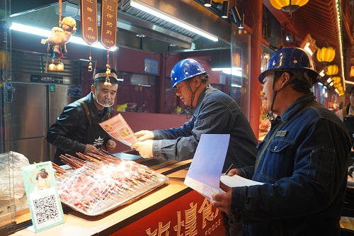 “老板,您的攤位線路沒問題,別讓電器超負(fù)荷運(yùn)行,出現(xiàn)任何用電問題請(qǐng)及時(shí)聯(lián)系我們。”2月3日晚,在敦煌燒烤爭霸賽現(xiàn)場,國網(wǎng)敦煌市供電公司工作人員正在對(duì)賽場線路設(shè)備進(jìn)行巡視檢查,以確保競賽的順利進(jìn)行。