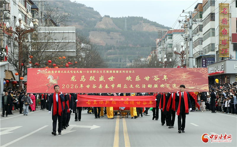 在新城路南關(guān)十字,這場(chǎng)以“龍馬躍盛世 歡樂(lè)甘谷年”為主題的聯(lián)歡匯演正式啟幕。作為“2026如意甘肅大眾文藝全民秀”的重要組成部分,匯演由56個(gè)方陣、34輛彩車(chē)、15個(gè)板塊構(gòu)成,分別象征著56個(gè)民族同心、34個(gè)行政區(qū)域同行、15個(gè)鄉(xiāng)鎮(zhèn)同向,既彰顯著全縣上下紅心向黨的赤誠(chéng),也全面展現(xiàn)了古冀大地的非遺魅力與昂揚(yáng)奮進(jìn)的時(shí)代風(fēng)貌,處處涌動(dòng)著丙午馬年的磅礴春潮。