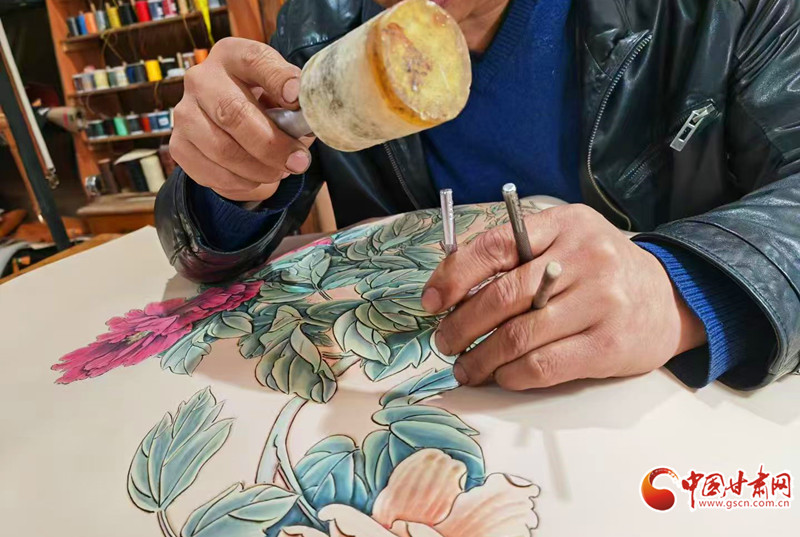 在高重民的眾多作品中,紫斑牡丹系列掛畫是他的心頭所愛。紫斑牡丹是中原牡丹的起源,在臨洮有著深厚的自然與人文積淀,而牡丹作為國花,更承載著中國人對富貴、圓滿、繁榮的美好寄寓。“帶著對家鄉(xiāng)文化的熱愛,還有對牡丹情懷的敬重,我創(chuàng)作了這一系列作品,希望用皮雕技藝,把這份根植于故土的美好長久留存。”高重民談及這份作品,滿是深情。