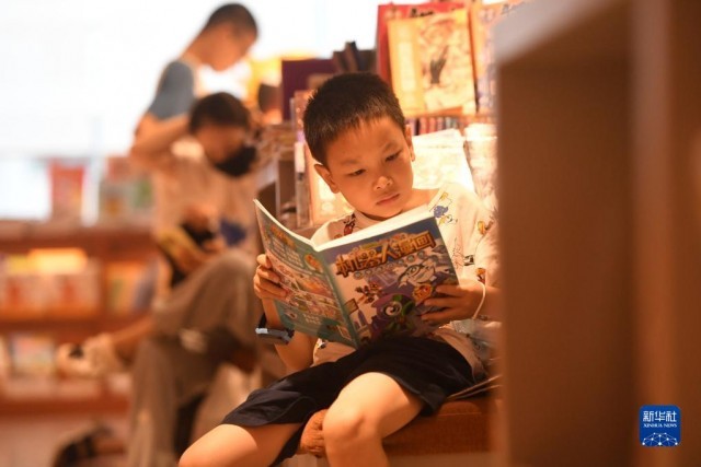 進入暑假,廣西南寧市不少學(xué)生來到書店閱讀,享受書香假期。