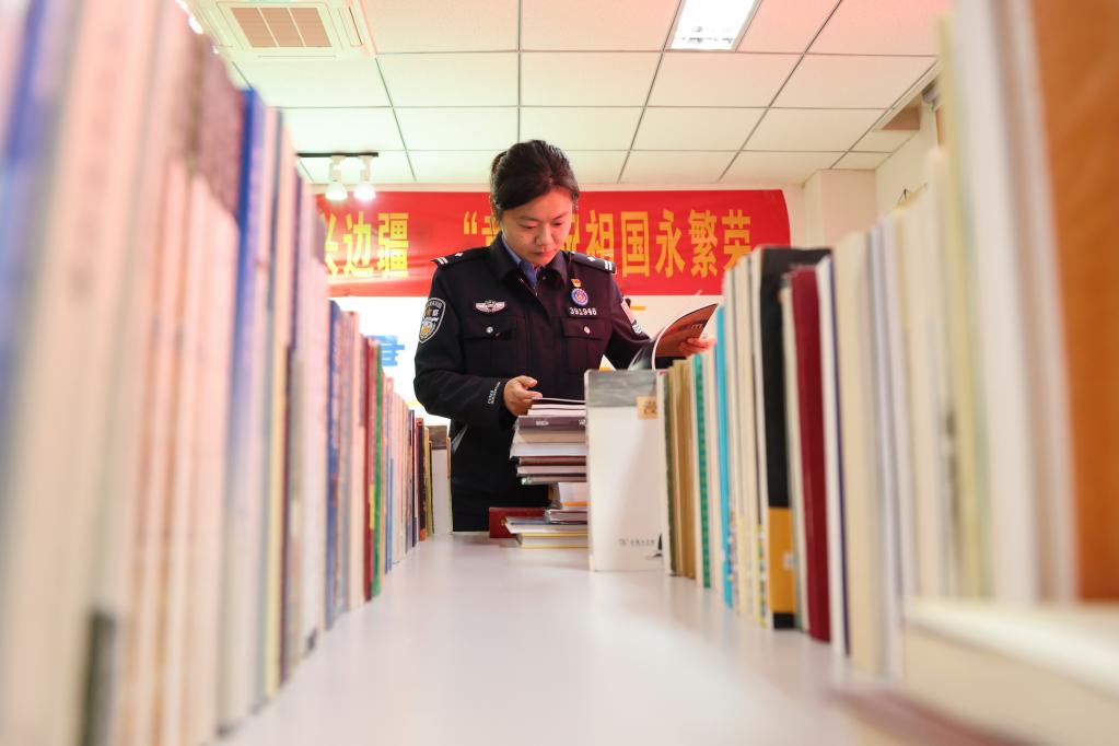 民警在圖書室里閱讀書籍。(張雨強(qiáng)攝)