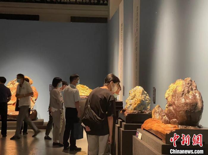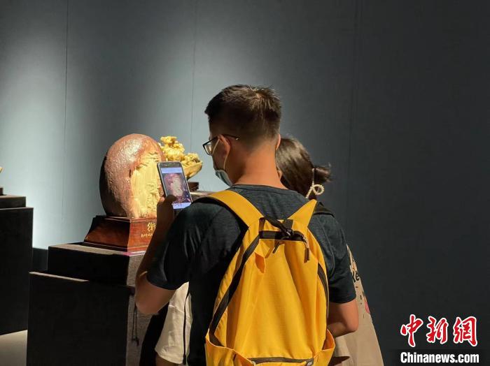 展覽現(xiàn)場(chǎng)的一件石雕作品引得觀眾拍照?!⊥τ?nbsp;攝