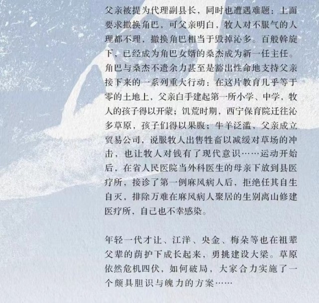 《雪山大地》將青藏高原幾十年來(lái)發(fā)生的改天換地,以及以“父親母親”為代表的三代建設(shè)者在這片土地上耕耘建設(shè)的日日夜夜,展現(xiàn)在讀者面前。人與自然、人與動(dòng)物、生態(tài)與發(fā)展的主題貫穿始終,全景式地展現(xiàn)了藏族牧民傳統(tǒng)社會(huì)形態(tài)和生活樣貌的變遷。