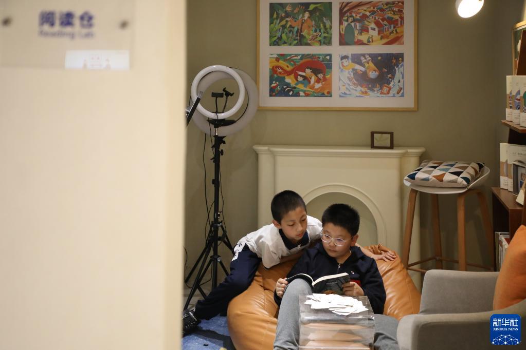 4月1日,在甘肅省蘭州市的讀者出版集團(tuán)數(shù)字閱讀中心讀者小站,小朋友在多功能閱讀倉(cāng)讀書。新華社記者 馬希平 攝