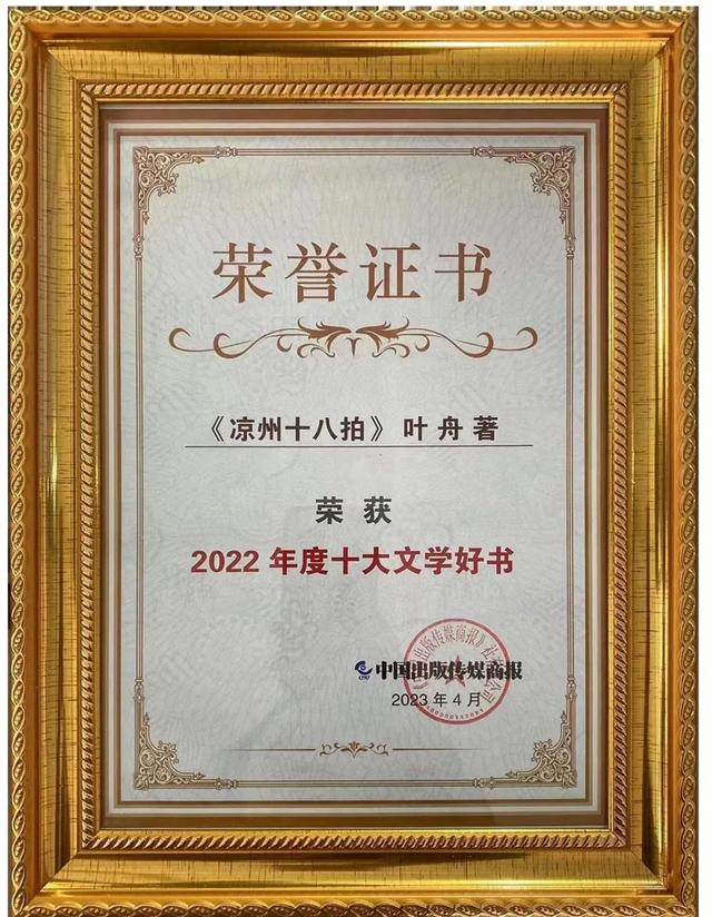 葉舟長篇小說《涼州十八拍》榮獲春風(fēng)悅讀榜年度白銀獎 并入選2022年度十大文學(xué)好書