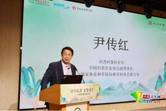 科普時(shí)報(bào)社社長(zhǎng)、中國(guó)科普作家協(xié)會(huì)副理事長(zhǎng)、國(guó)家林業(yè)和草原局林草科普首席專家尹傳紅發(fā)表題為“激發(fā)想象力和探求欲的科普閱讀”的主題演講。尹傳紅認(rèn)為科普閱讀可以與孩子的智力發(fā)育同步進(jìn)行,科學(xué)可能是最能彰顯問(wèn)題、發(fā)現(xiàn)問(wèn)題、解決問(wèn)題的重要領(lǐng)域,科普閱讀能幫助孩子增長(zhǎng)知識(shí)、增加智慧、增進(jìn)思想。