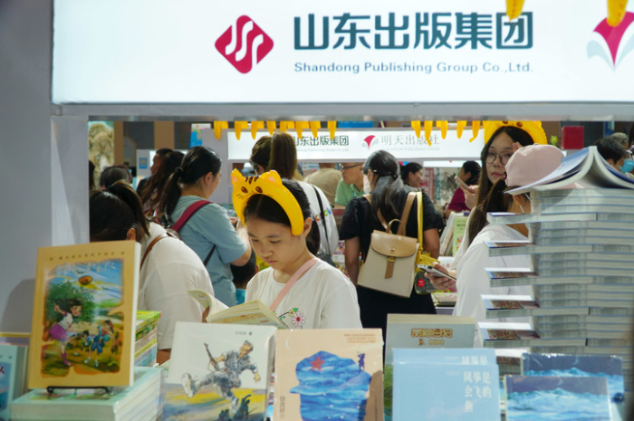正值暑假,書博會上少兒類圖書最受青睞。二十一世紀出版社集團攜近千種圖書參展,設置“大中華尋寶記”和“世紀繪本館”主題展館,吸引眾多目光。暢銷書“大中華尋寶記”系列新書和文創(chuàng)產(chǎn)品一經(jīng)亮相便售罄,備受小讀者喜愛。