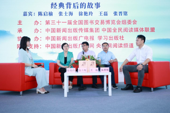 全民閱讀“紅沙發(fā)”系列訪談活動上,學習出版社介紹《經(jīng)典背后》的出版故事。組委會供圖